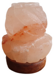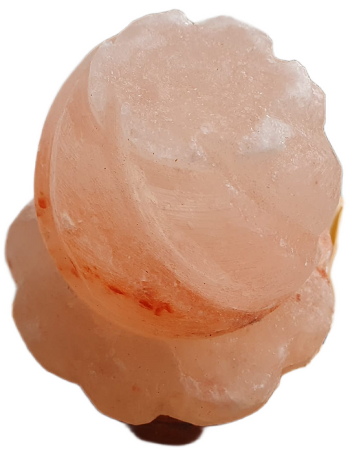 Lampa solna rzeźbiona z soli himalajskiej w ciekawym kształcie przypominającym kwiat lotosu.